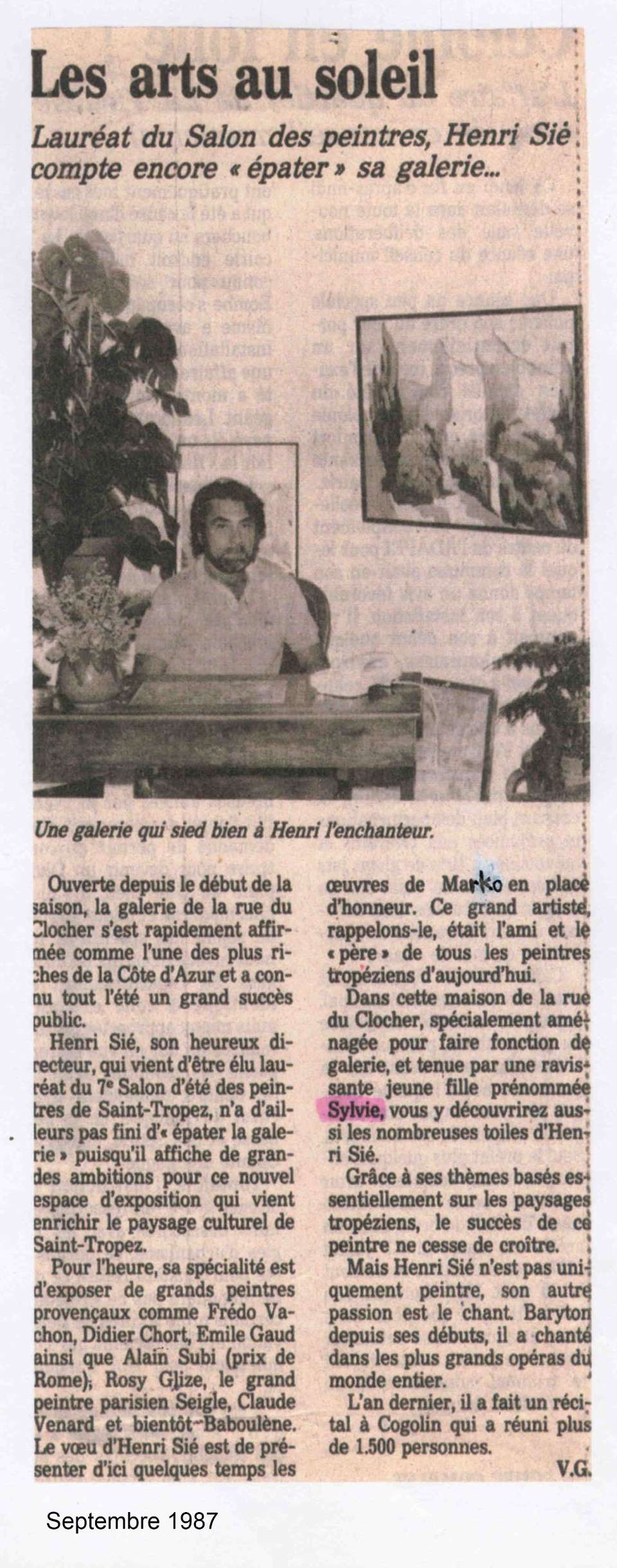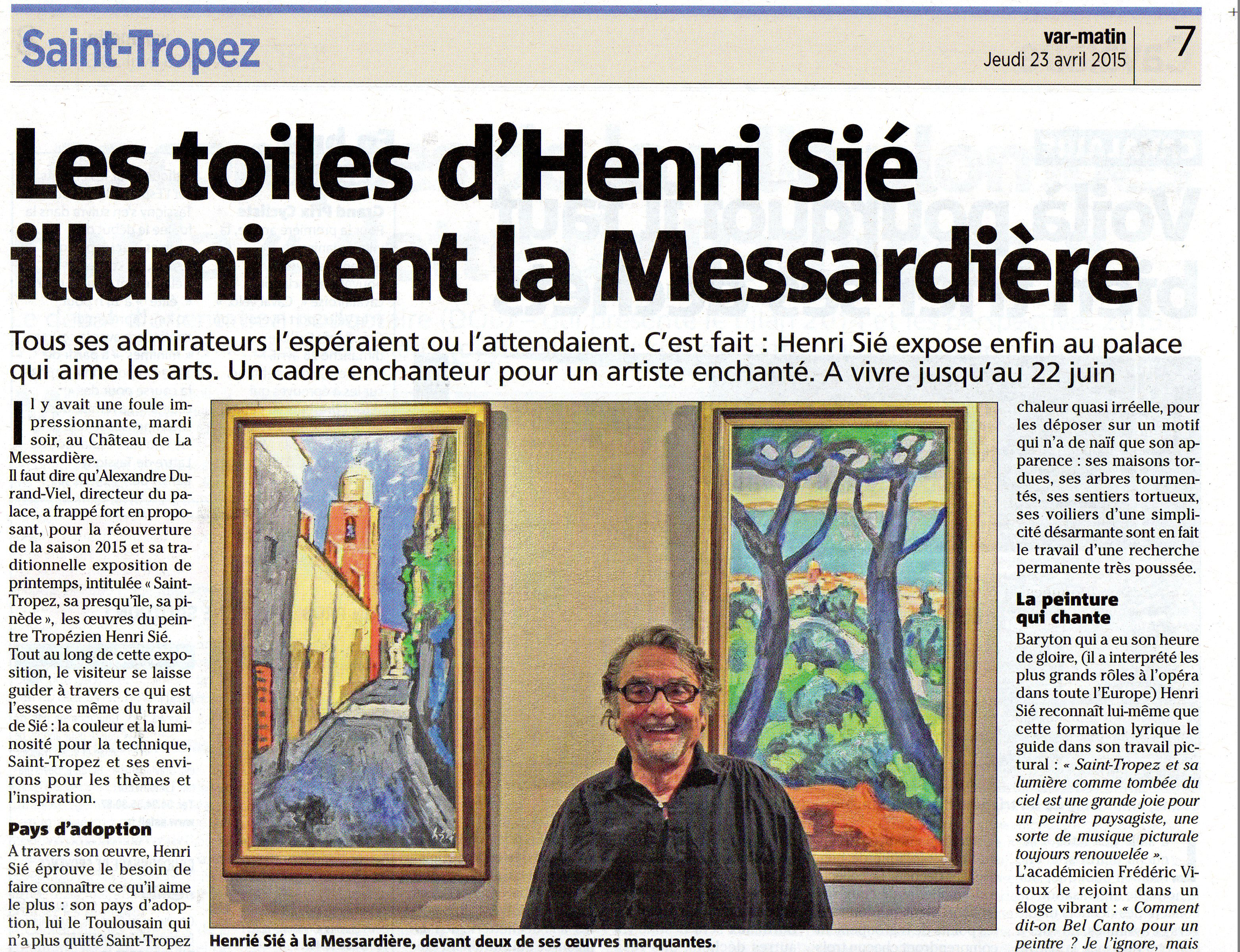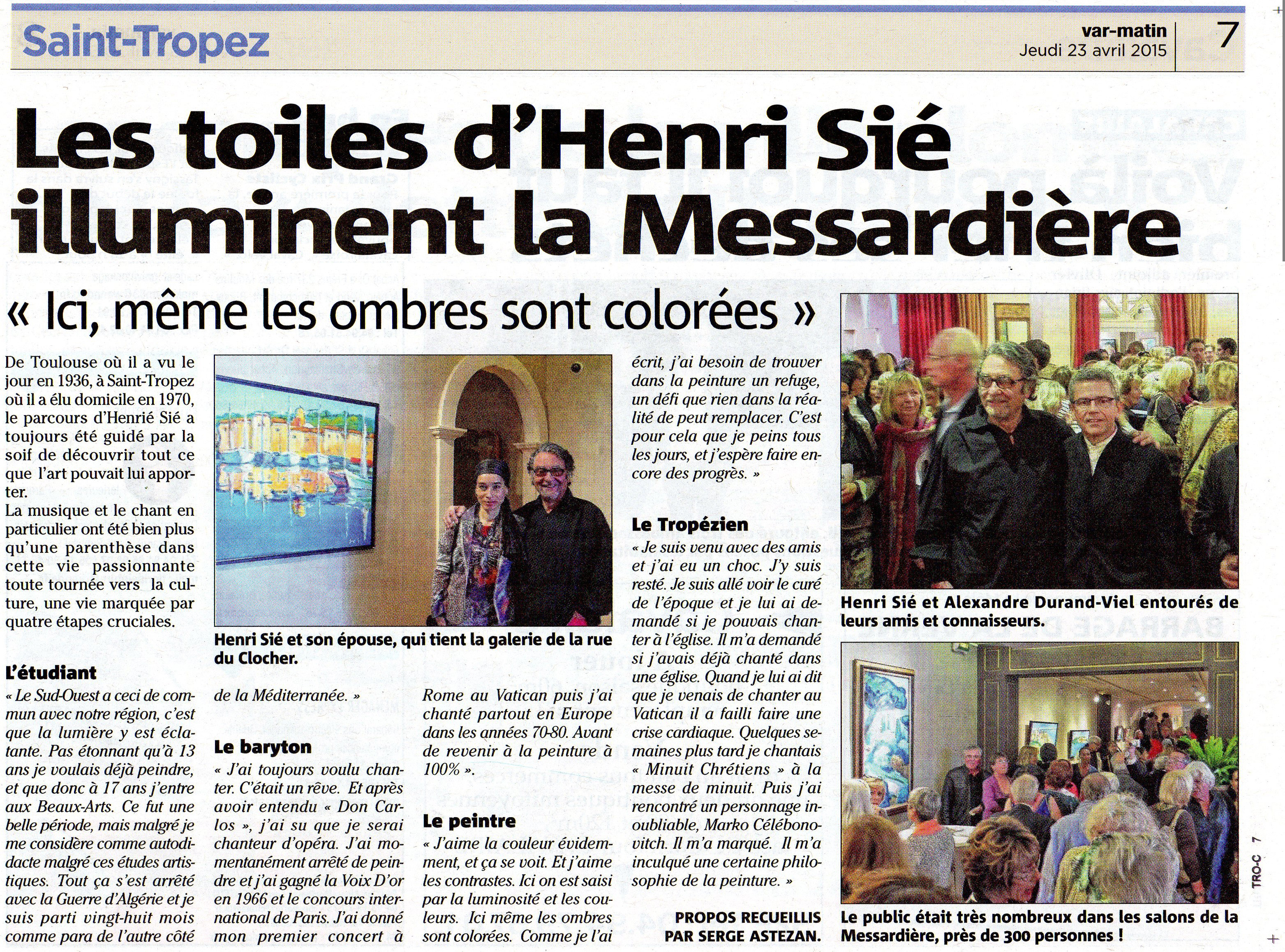Avec sa vie foisonnante et passionante, ses métiers-passions de chanteur lyrique, et aujourd'hui d'artiste-peintre, Henri Sié a suscité nombre d'articles dans la presse.
