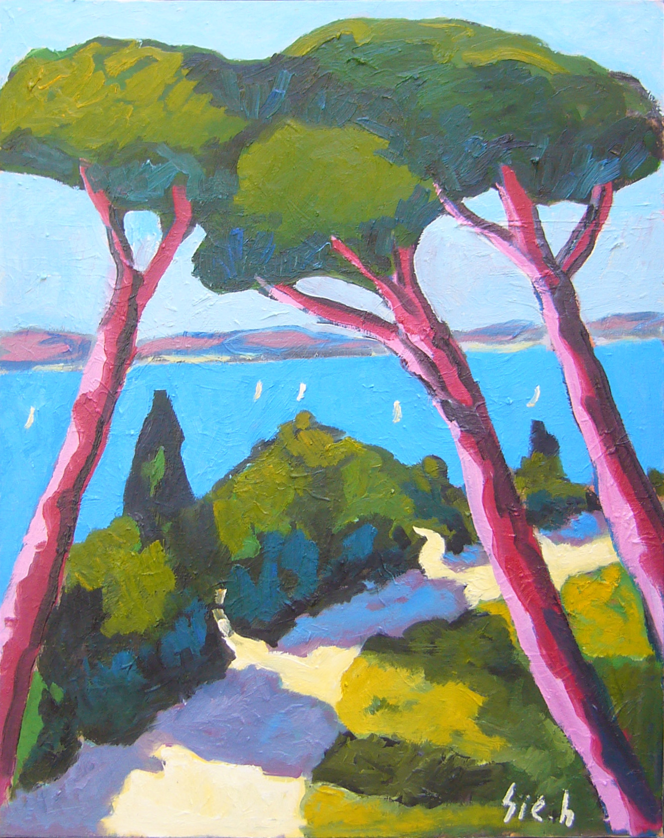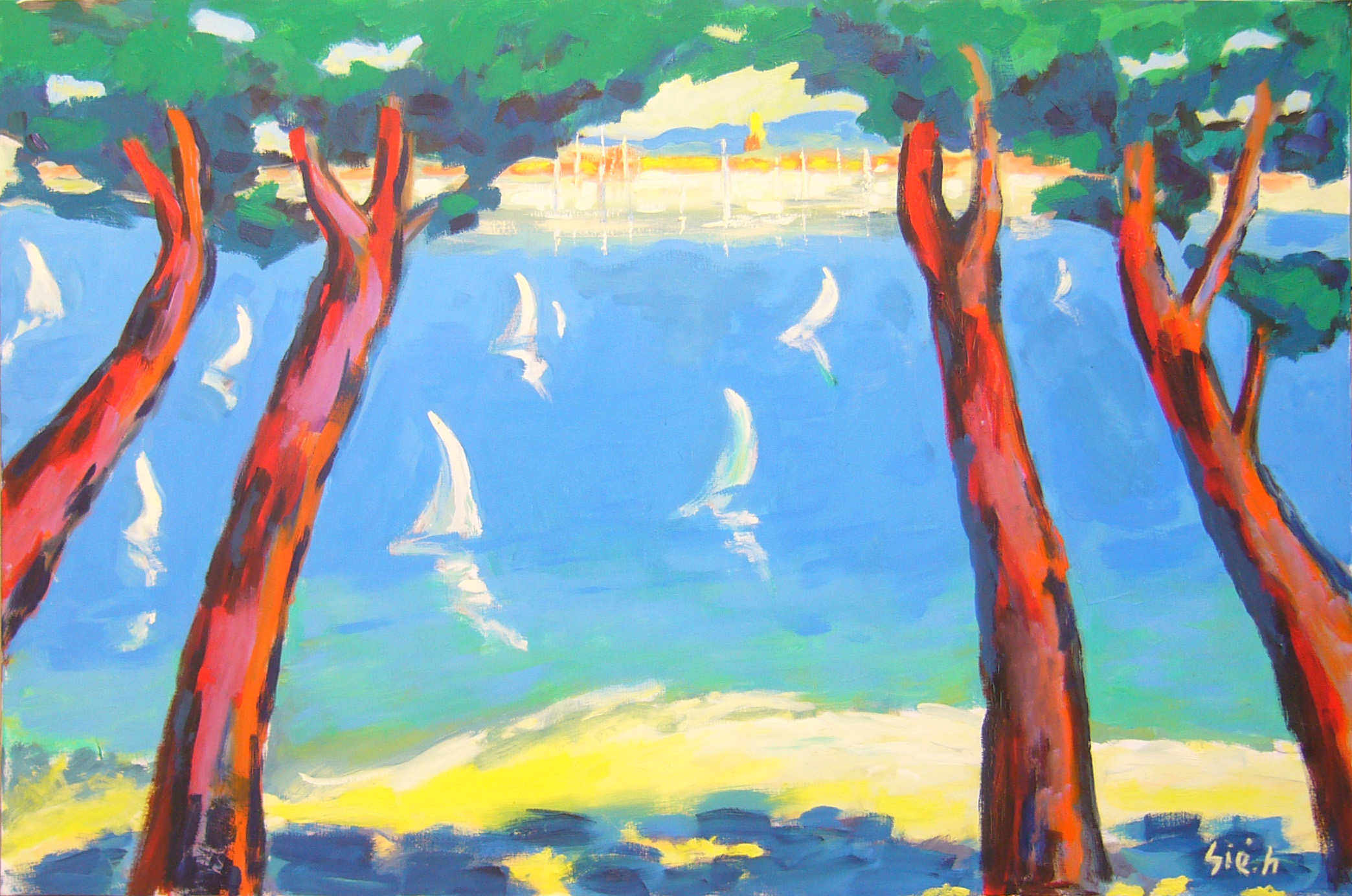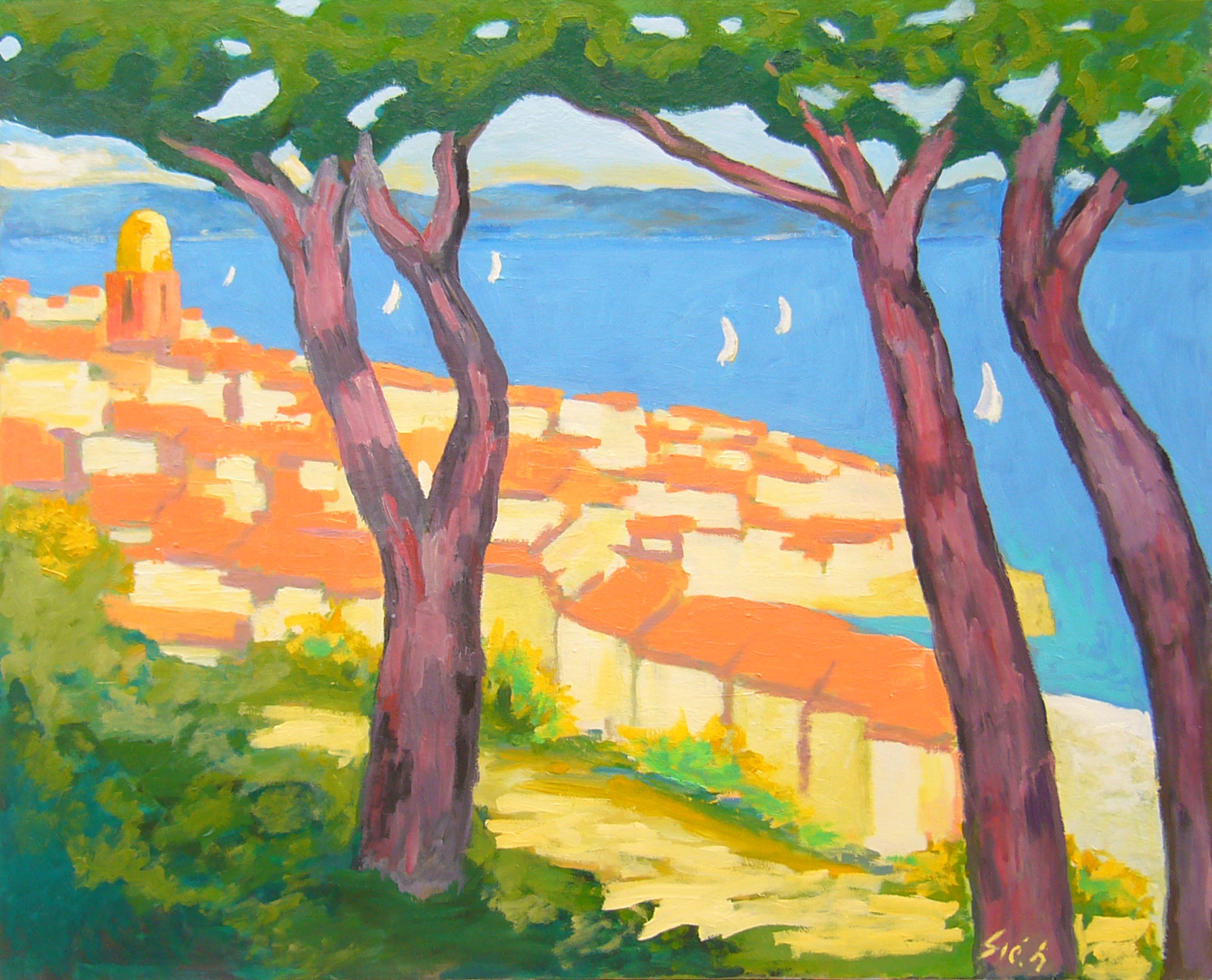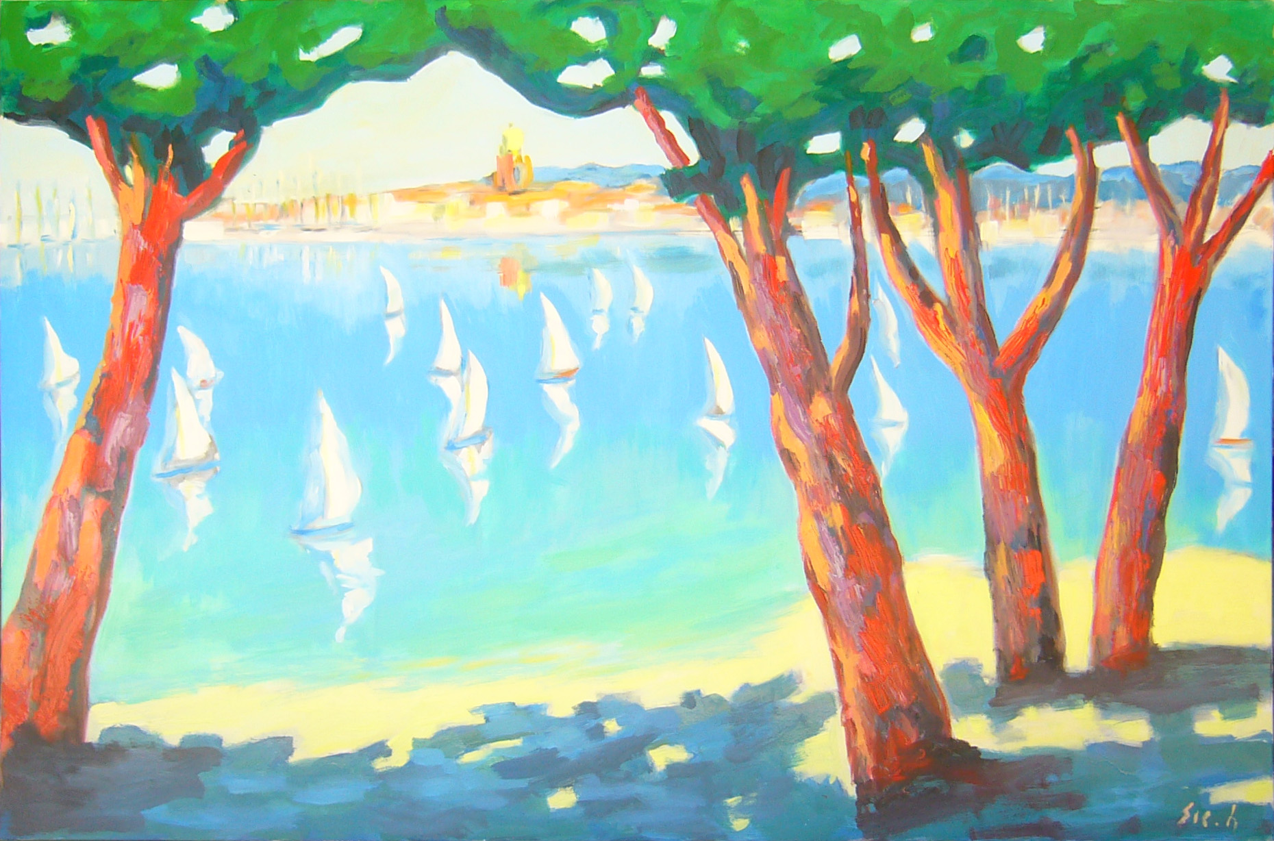 Saint Tropez à travers les arbres 162 x 130cm Saint Tropez à travers les arbres 162 x 130cm